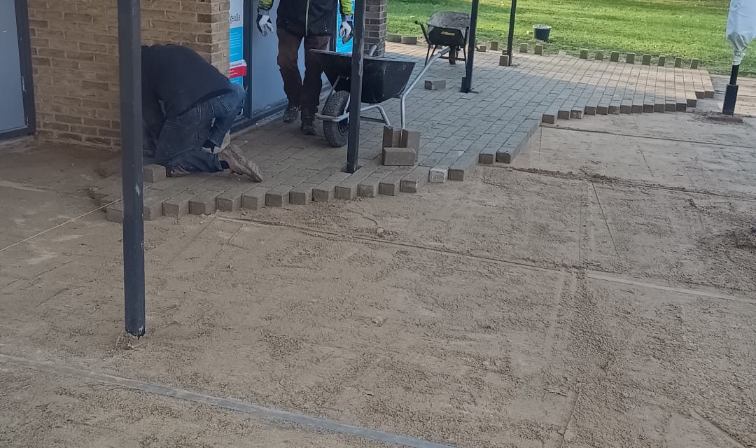 Vele handen…! zijn nog steeds aan het werk om het terras voor Maria’s POOLBAR een nieuw uiterlijk te geven.